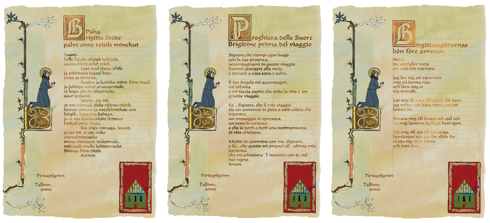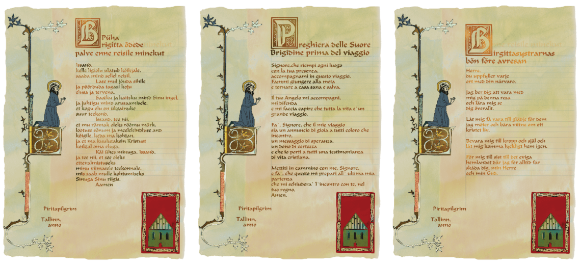 Pirita abbey diplomaDesign of prayers for PIRITA KLOOSTER in Pirita, Tallinn, Estonia, a branch convent of St Birgitta’s order. The nursery was re-established after demolition in 16th century.